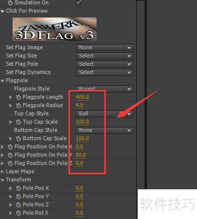 7、 选择3D flag功能,按图示设置相关参数。