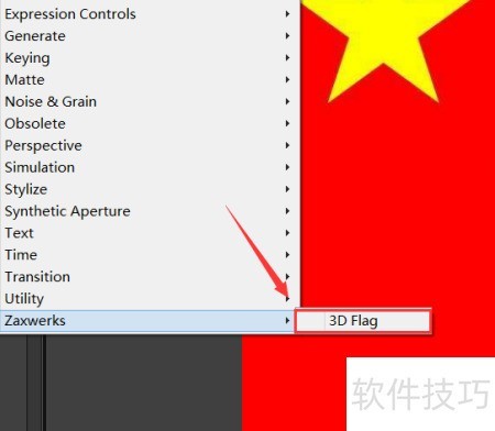 6、 点击zaxkerks,在其下拉菜单中选择3Dflag,具体位置见图示。