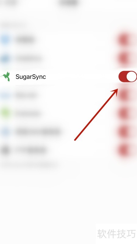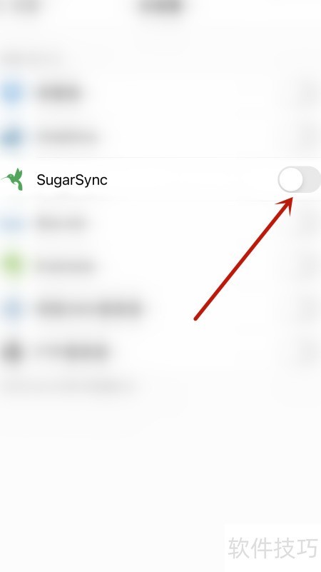 3、 在设置页面点击SugarSync右侧的圆形图标。