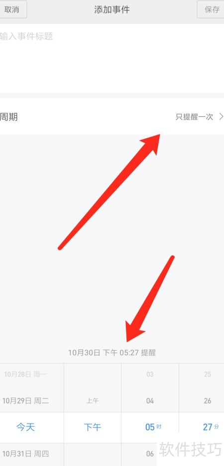 14、 设定提醒时间和周期,即可启用小米手环的事件提醒功能。