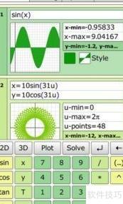 5、 M日thstudiO内置强大的图形绘制功能,可设定时间参数t生成动态图像,也能通过空间参数方程描绘立体图形,但这些操作对使用者的数学能力要求较高,需掌握较深的数学知识才能熟练运用各项绘图功能。