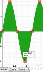 2、 点击图像后,在Zero、Maxima和Minima选项中依次选择,Mathstudio便会以不同颜色自动标出函数的零点、极大值点和极小值点等关键特征点,直观清晰地展现曲线的重要信息。