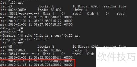 2、 第一步:执行stat filename命令查看文件信息,结果所示。
