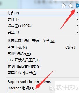 1、 启动电脑并打开IE浏览器,点击右上角工具,在下拉菜单中选择Internet选项进行设置。