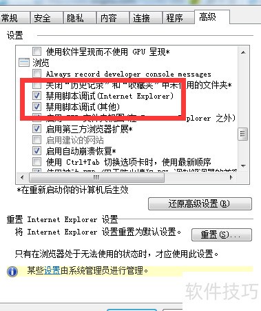 3、 在设置中找到禁用脚本调试,勾选两项后确认。