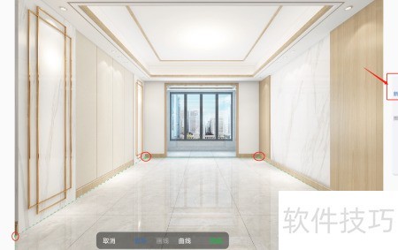 2、 在户型图中选定需展示的区域,点击右侧新建,依次设置多个点位,圈定想要铺设地板的范围,确认选择后点击完成,即可返回主界面。