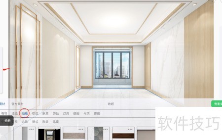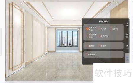 4、 选择心仪的墙纸样式后,轻点或拖至地面,立即呈现铺贴效果预览。