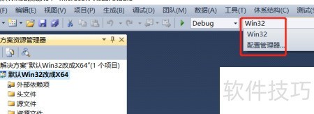 4、 点击平台下拉菜单,仅显示Win32,缺少X64选项