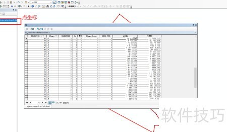 在ArcGIS中处理数据库时,若需获取点的精确位置,可通过工具提取坐标值。具体操作是将点要素转换为包含经纬度字段的表格,从而获得每个点的经度和纬度数据。