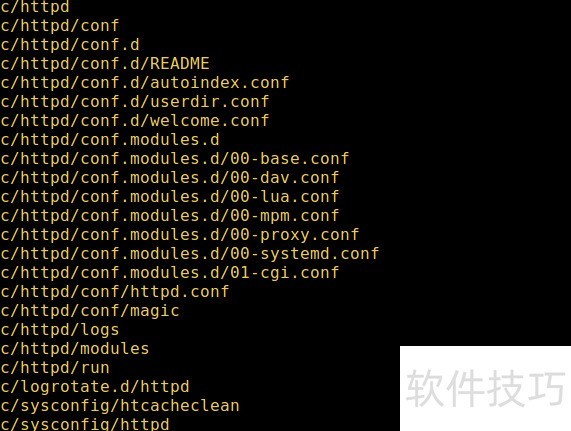15、 本例将展示如何列出已安装的 apache2 Web 服务器相关文件。