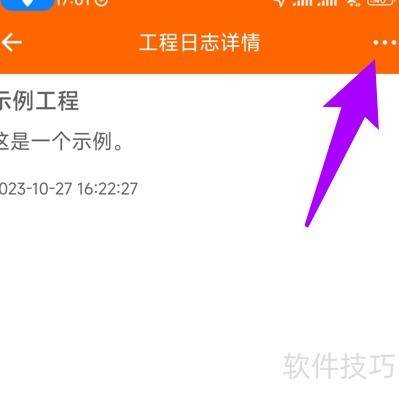2、 在工程日志详情页点击右上角三点图标。