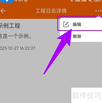 1、 进入工程日志页面,选择要编辑的日志条目。
