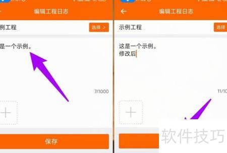 4、 编辑工程日志页面,修改内容后点击保存即可。