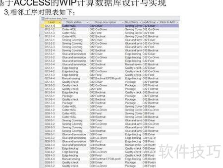 3、 相邻工序对照表如下所示