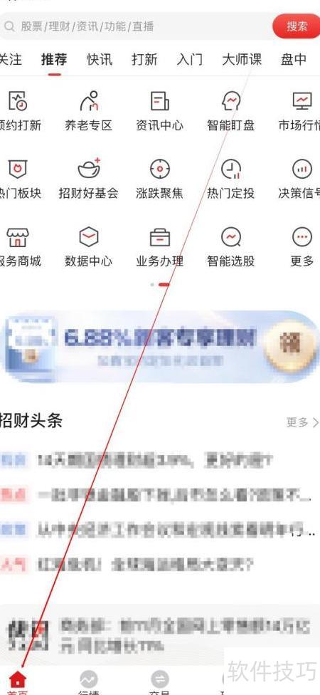 招商证券查看私募排期方法 、 打开招商证券,点击左下角首页按钮。 ...