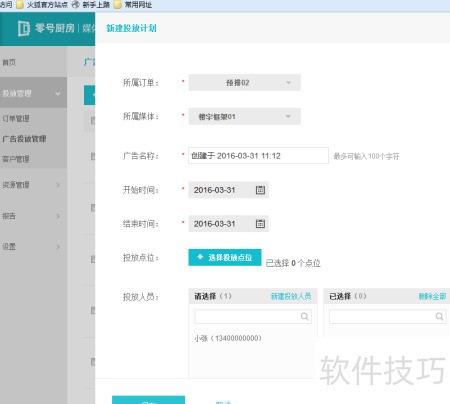 3、 为订单制定广告投放方案,支持单个订单创建多个投放计划,满足个性化推广需求。预排订单的投放处于待确认状态,相关资源位将被锁定,待订单转为正式后,广告投放随即生效。