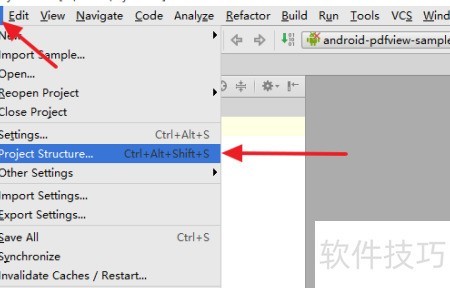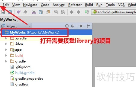 1、 启动Android Studio后,打开需要引入库的项目。假设有两个项目,分别为项目A和库项目B,则应打开项目A。所示为项目结构,随后点击界面右上角的File菜单选项,进行后续操作。