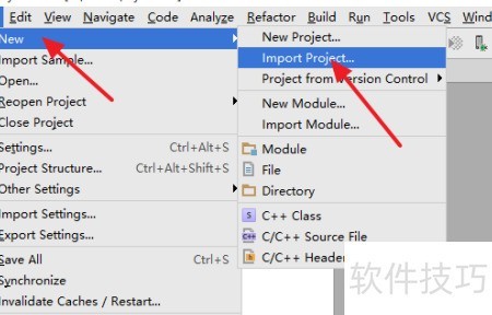 2、 在下拉菜单中依次选择New→Import Module,打开项目导入界面。需注意应导入Module而非Project,若选择导入Project,Android Studio会自动新建窗口进行编辑,如此便无法作为库模块使用,违背了作为Library的初衷,影响后续集成与调用。