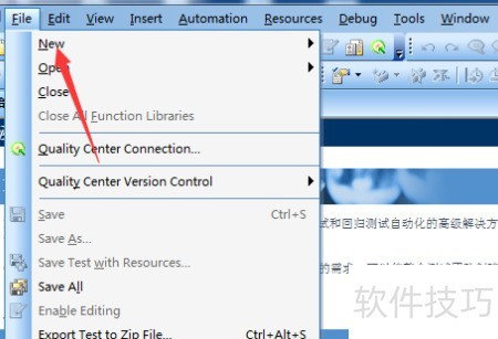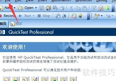 1、 打开QTP软件界面后,点击菜单栏中的File选项。