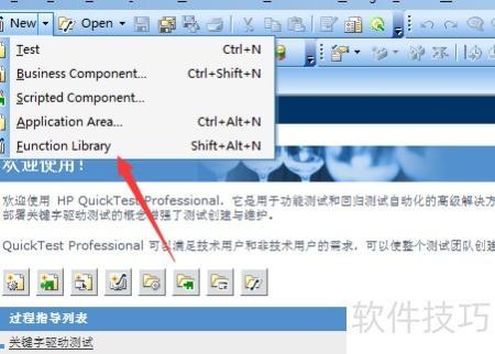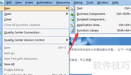 在QTP软件界面中创建函数库文件的方法如下:首先打开QTP,选择菜单中的资源选项,点击新建函数库,系统会自动生成一个空白的函数库文件。用户可在其中编写公共函数,保存后即可在测试脚本中调用,实现代码复用,提升测试效率。
