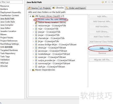 5、 进入Libraries选项卡,选择Access rules,然后点击Edit进行修改。