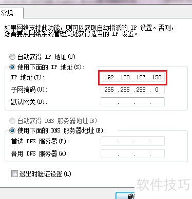 2、 将调试电脑的本地连接IP地址配置为192.168.127.150,确保网络设置正确无误。