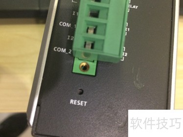 3、 将测试用的电脑通过网线连接至AWK-3131-EU设备的LAN接口,准备进行客户端参数配置。首先需对设备执行恢复出厂设置操作。在设备电源接口附近可找到一个标有RESET的小孔,使用大头针类细长物体插入并长按内部按键约10秒钟后松开,设备将自动重启并恢复为初始状态。
