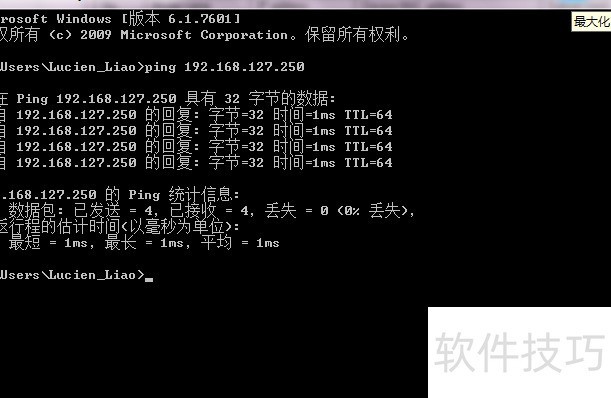 15、 连接AP的电脑可以正常ping通客户端和AP的IP地址。