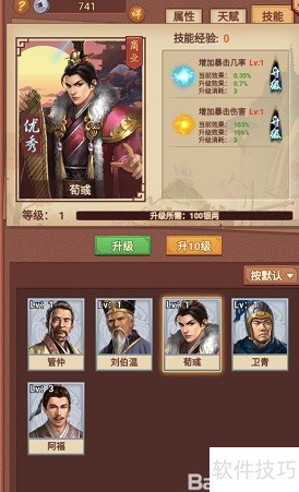 1、 进入一品逍遥王主界面后,优先培养门客。每位门客天赋与属性各异,需提升其技能等级,此过程将消耗银两,具体操作所示。