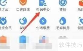 1、 打开手机支付宝,进入市民中心即可办理相关业务。