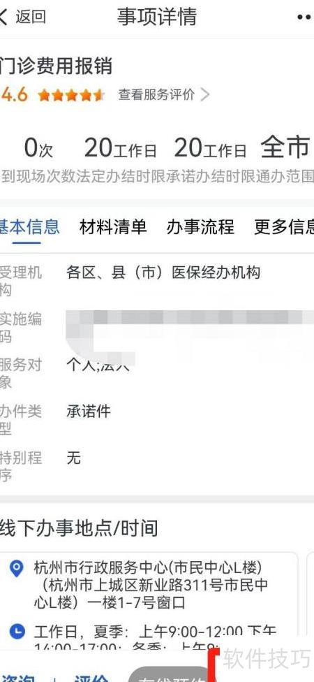 4、 点击页面底部进入办事即可办理门诊报销业务。