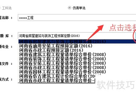 6、 在新建工程时选择所需的定额库。