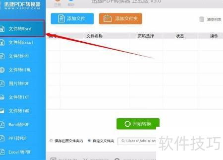1、 双击PPT转Word工具的快捷方式,进入转换界面后选择文件转Word功能即可开始转换。