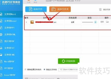 2、 点击添加文件或添加文件夹,选择需转换的PPT文件,确认后即可导入转换界面。