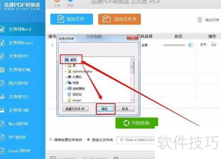 3、 点击浏览按钮,选择桌面后确认,可将转换后的文件保存到桌面,也可根据需要选择其他存储位置。