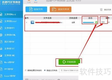4、 点击开始转换按钮,等待页面显示对号表示转换完成,随后点击打开即可查看生成的Word文档。整个过程简单快捷,方便用户迅速获取所需文件内容。
