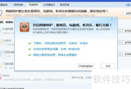 6、 在网速保护功能页面,可为电脑网络进行速度防护,待防护生效后即可正常使用。