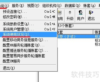 10、 登录后选择账套,进入系统菜单查看使用状况。