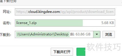 7、 勾选新增账号后点击生成许可文件,系统将自动创建一个ZIP压缩包,选择合适路径保存并下载即可。