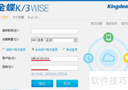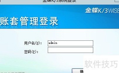 9、 登录金蝶ERP服务器,进入账套管理界面,使用默认用户名admin且密码为空进行操作。