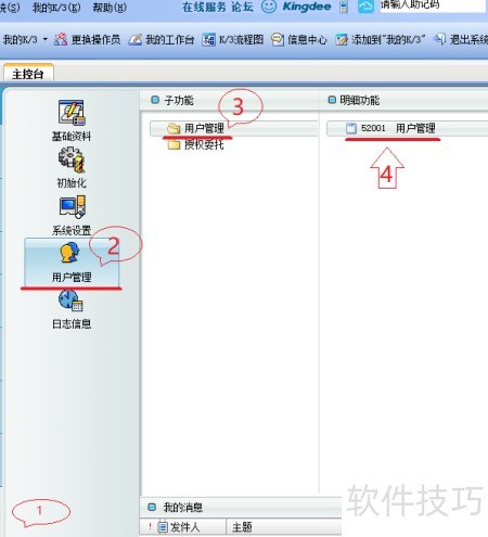 15、 登录后进入新窗口,依次点击系统设置、用户管理,在明细功能里选择系统管理并双击开启。