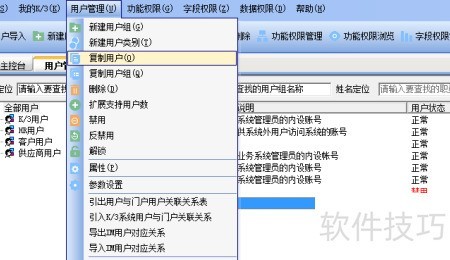 16、 在新窗口选择账号,通过菜单栏的用户管理功能进行复制操作。