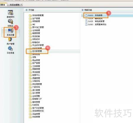 2、 进入系统设置,选择应付账款管理,点击系统参数。