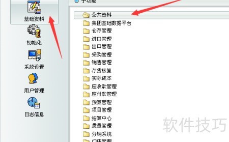 3、 进入系统设置,依次选择基础资料和公共资料。