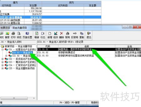 10、 双击相应现金项目即可完成指定,按科目操作十分便捷。