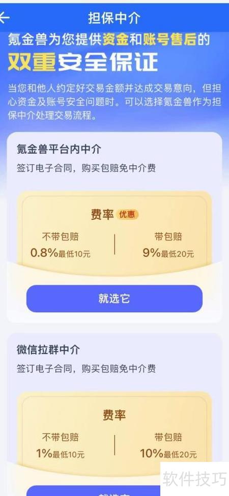 2、 选择担保方式:通过氪金兽平台中介服务。