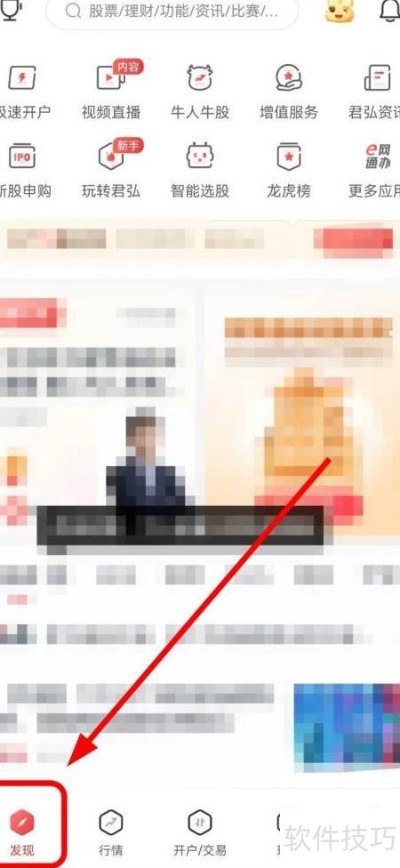 1、 打开国泰君安君弘APP,点击底部发现入口。