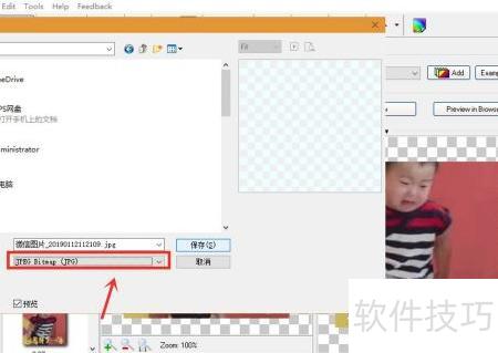 8、 进入保存页面后,请根据需要选择图片的存储位置和格式,点击下方选项进行设置,一般情况下图片格式默认为JPG。