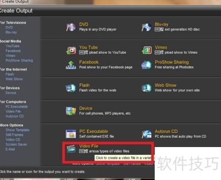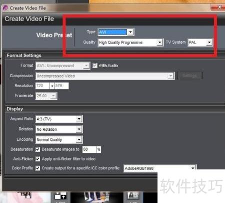 8、 完成视频调整后,点击屏幕上方的create output开始导出。随后在弹出的窗口中选择video file,进入下一步设置界面。根据需求选择合适的视频分辨率,我所选的参数所示,确认无误后点击create即可生成并保存视频文件。