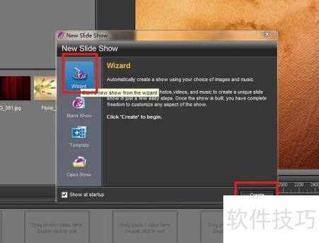 2、 打开软件后会出现一个弹窗,先点击WIZARD,然后选择create即可继续操作。